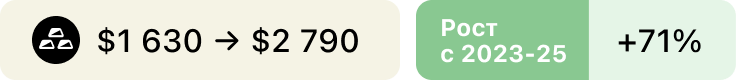 С 2004 года золото подорожало с $400 до $2790 (+600%), а в 2024 году прибавило 27%.